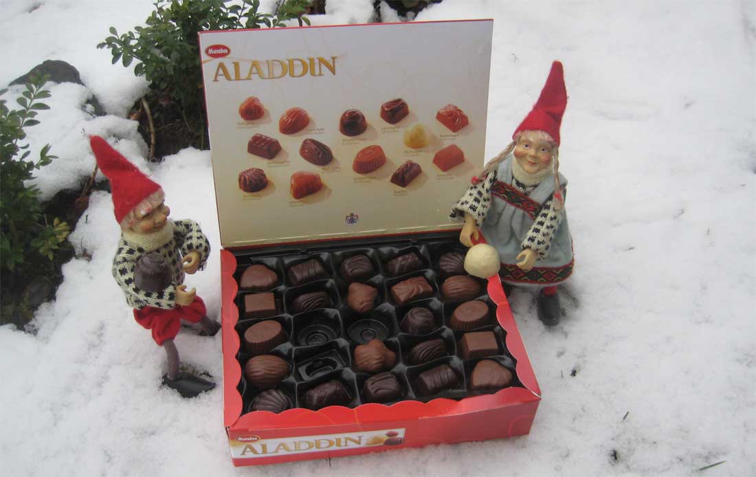 ![]() | Av tradition ska det ju vara Aladdin, men jag gillar inte mörk choklad, så jag måste ju säga att jag tycker bäst om Paradis. NEJ, det får man inte, men det är klart att man kan göra undantag. :-) | |